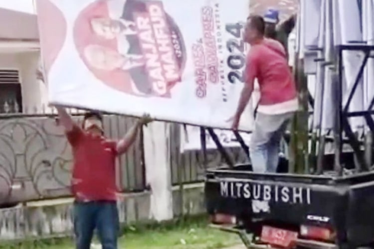 Dalam video tersebut, tiga orang terlihat sedang menurunkan baliho Ganjar-Mahfud dari atas pikap dan menyenderkannya ke pagar salah satu rumah di lokasi. Mobil tersebut memiliki plat nomor BK 9454 T, yang diperuntukkan bagi wilayah Simalungun.