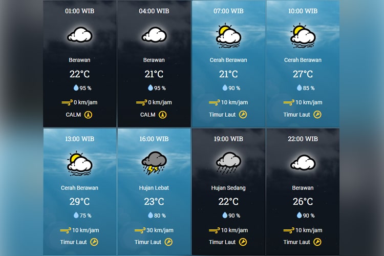 Dimulai dengan cuaca berawan di awal hari, kota akan menyambut fajar Natal dengan suhu sekitar 22 derajat Celsius pada pukul 01.00 WIB, yang akan turun sedikit menjadi 21 derajat Celsius pada pukul 04.00 WIB. Pagi hari akan disambut dengan cuaca cerah berawan, menyuguhkan suasana yang segar dengan suhu yang masih bertahan di kisaran 21 derajat Celsius pada pukul 07.00 WIB.