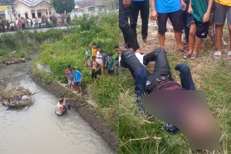 Dalam unggahan tersebut, terlihat detik-detik warga setempat melakukan evakuasi jasad korban.
