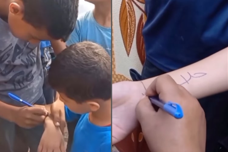 Salah satu video yang paling menggugah hati dan menyebar luas berasal dari akun Instagram @eye.on.palestine. Dalam video tersebut, anak-anak di Gaza tampak menulis nama mereka di pergelangan tangan. Tujuannya tragis: memudahkan identifikasi jasad mereka jika mereka menjadi korban serangan. Keterangan video tersebut menjelaskan, “Anak-anak di Gaza yang dikepung memiliki nama mereka tertulis di tangan mereka untuk memfasilitasi identifikasi tubuh mereka jika mereka terbunuh dalam serangan Israel.”