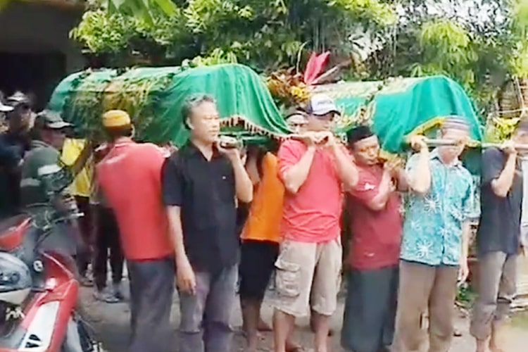Tampak dalam video yang diunggah, warga membawa dua keranda dan bersiap mengantarkan jenazah ayah-anak tersebut ke pemakaman,